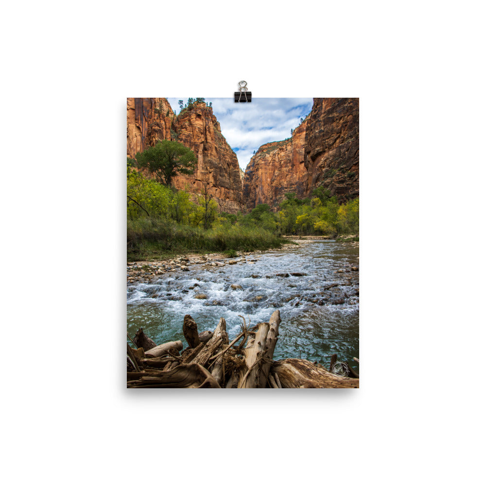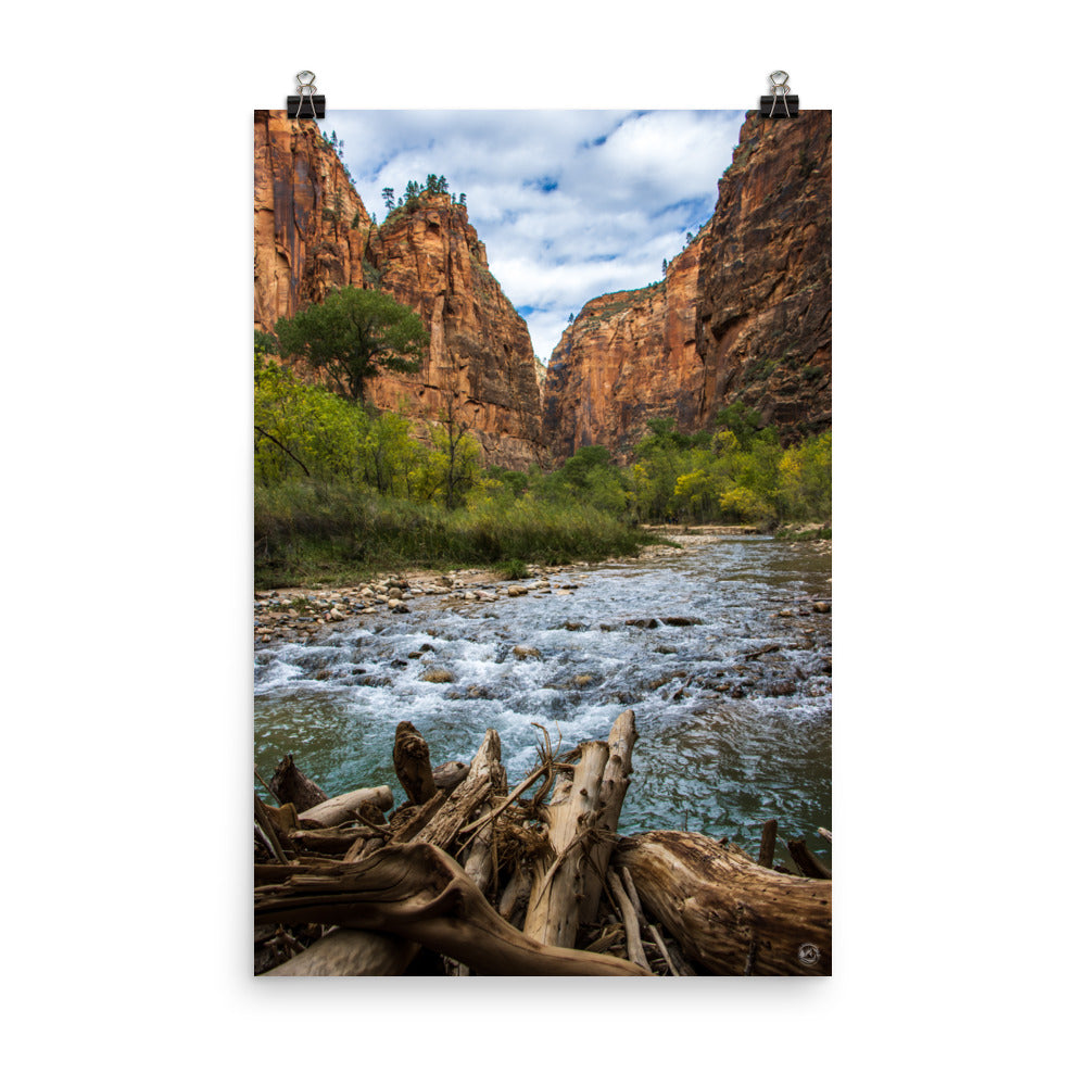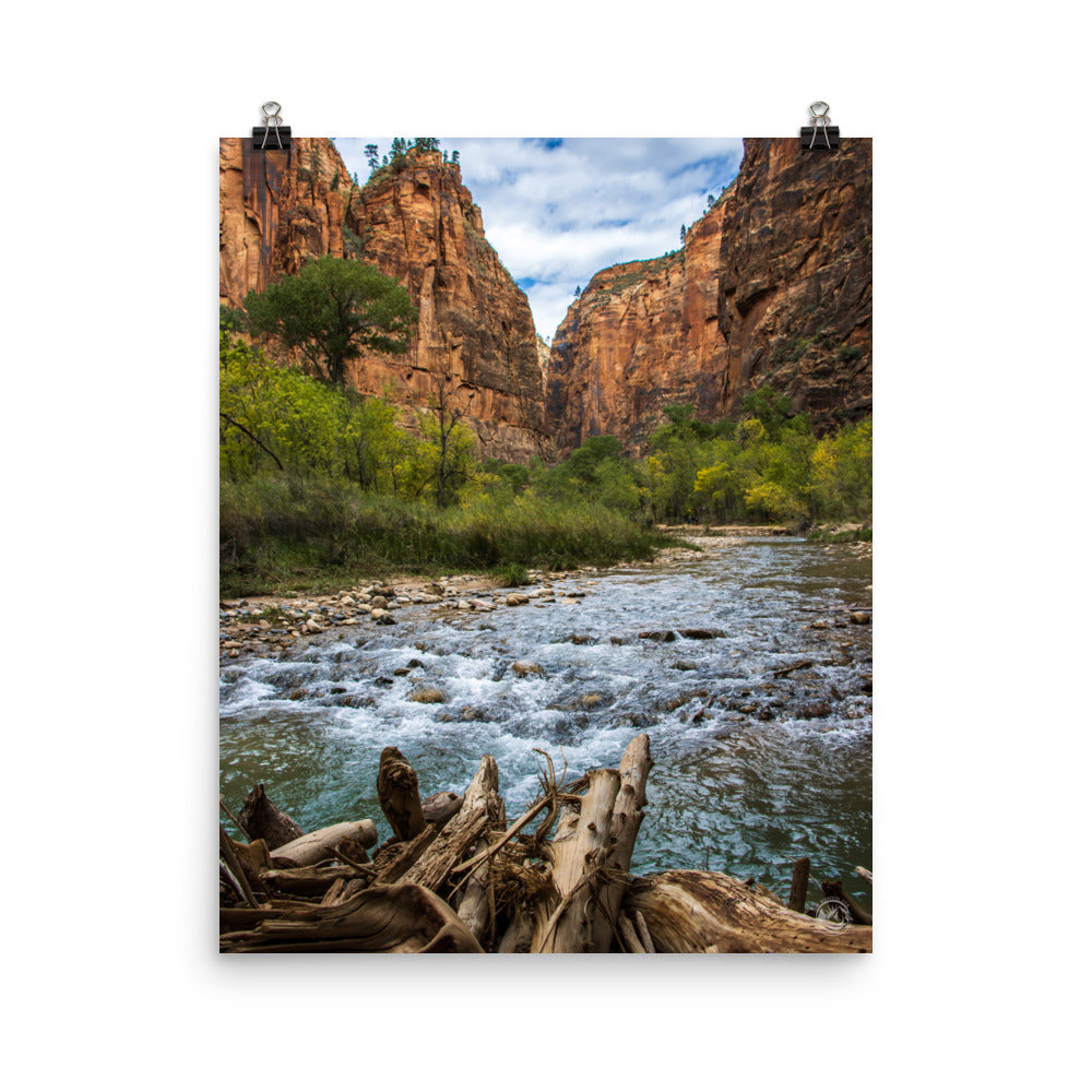 Looking down the Virgin River as the canyon narrows to form what is commonly known as the "narrows", The incredible and stunning beauty of Zion cannot be understated, as all of nature's colors culminate into one picturesque environment.